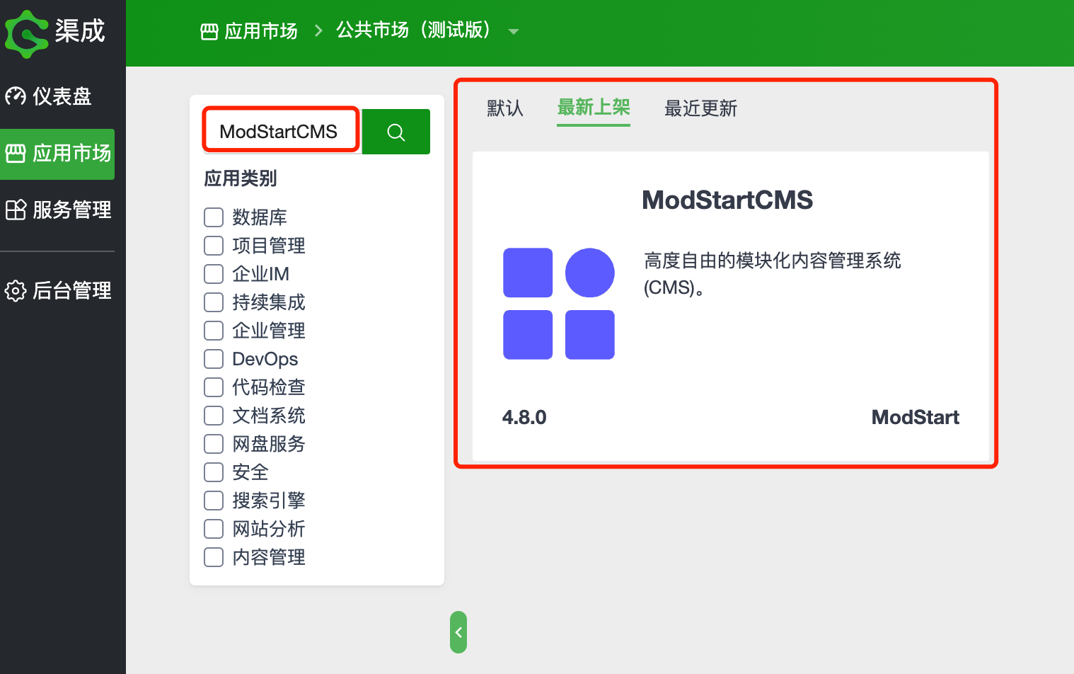 curl -sSL https://pkg.qucheng.com/qucheng/cli/stable/install.sh | INSTALL_APP=modstartcms sh -