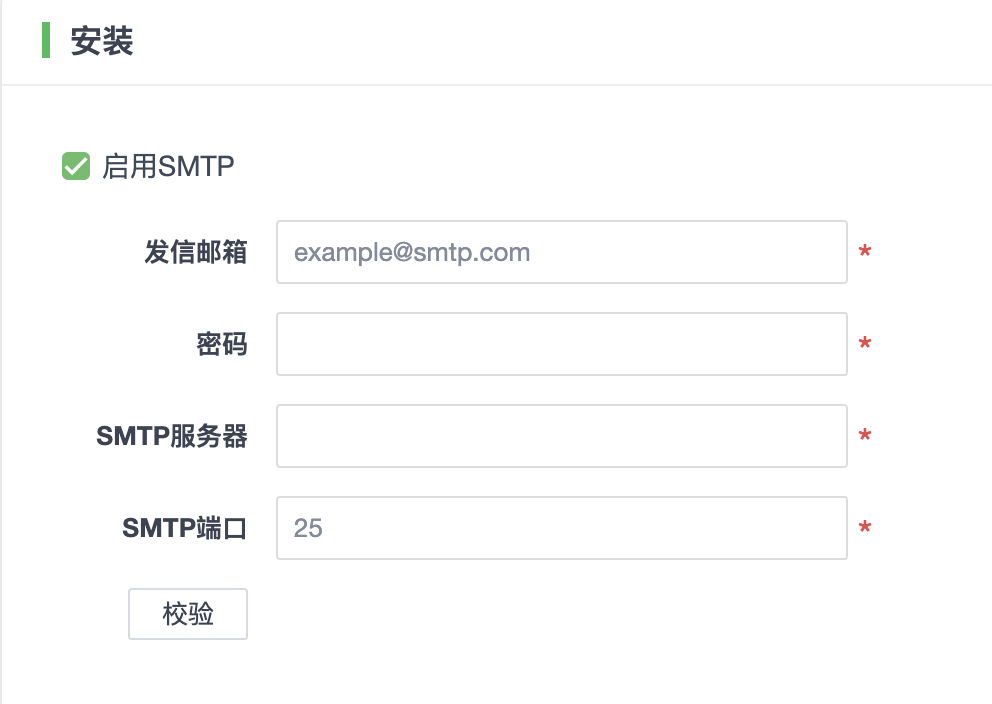 增加全局邮箱 SMTP 配置,为平台上的服务提供统一的邮件配置,安装应用时启用SMTP 可以直接使用全局的 SMTP 配置来发送邮件。