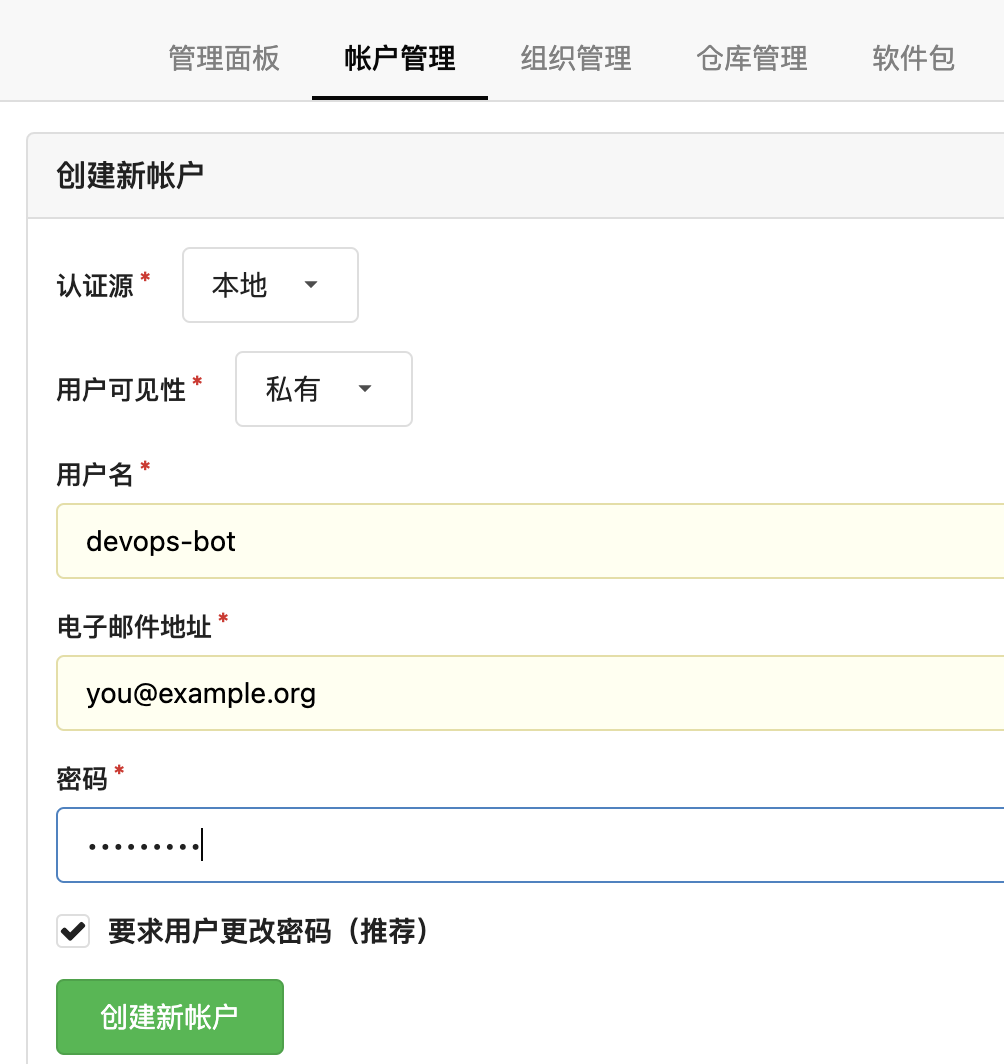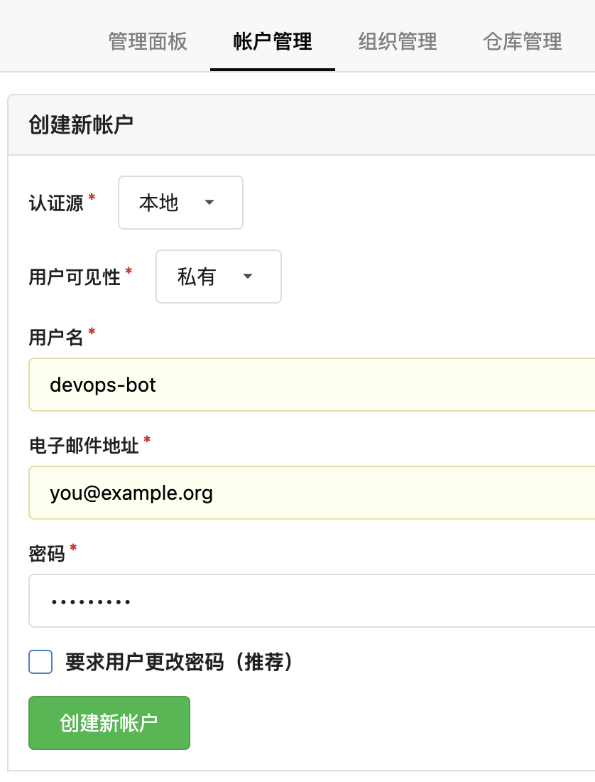 本文介绍如何在 Gitea 服务里创建一个用户