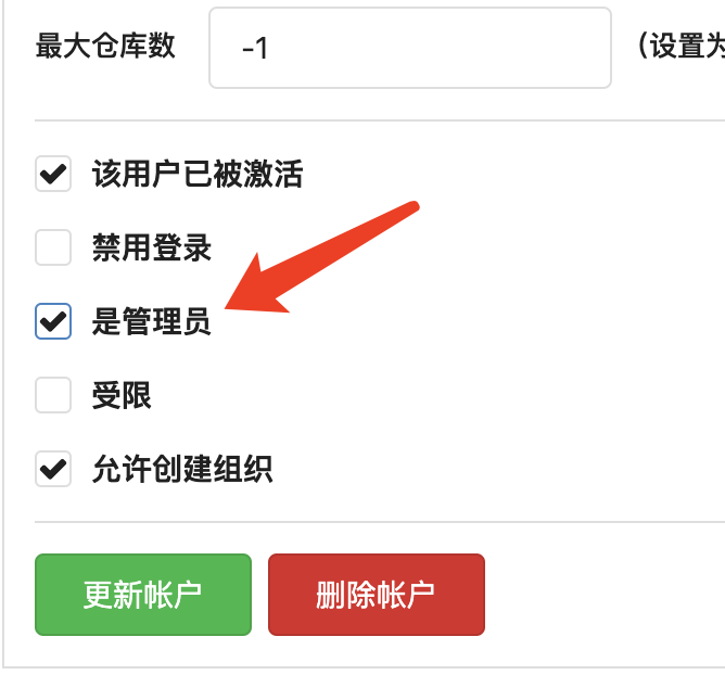此时创建的是普通用户,需要再次编辑,将其设置为管理员。