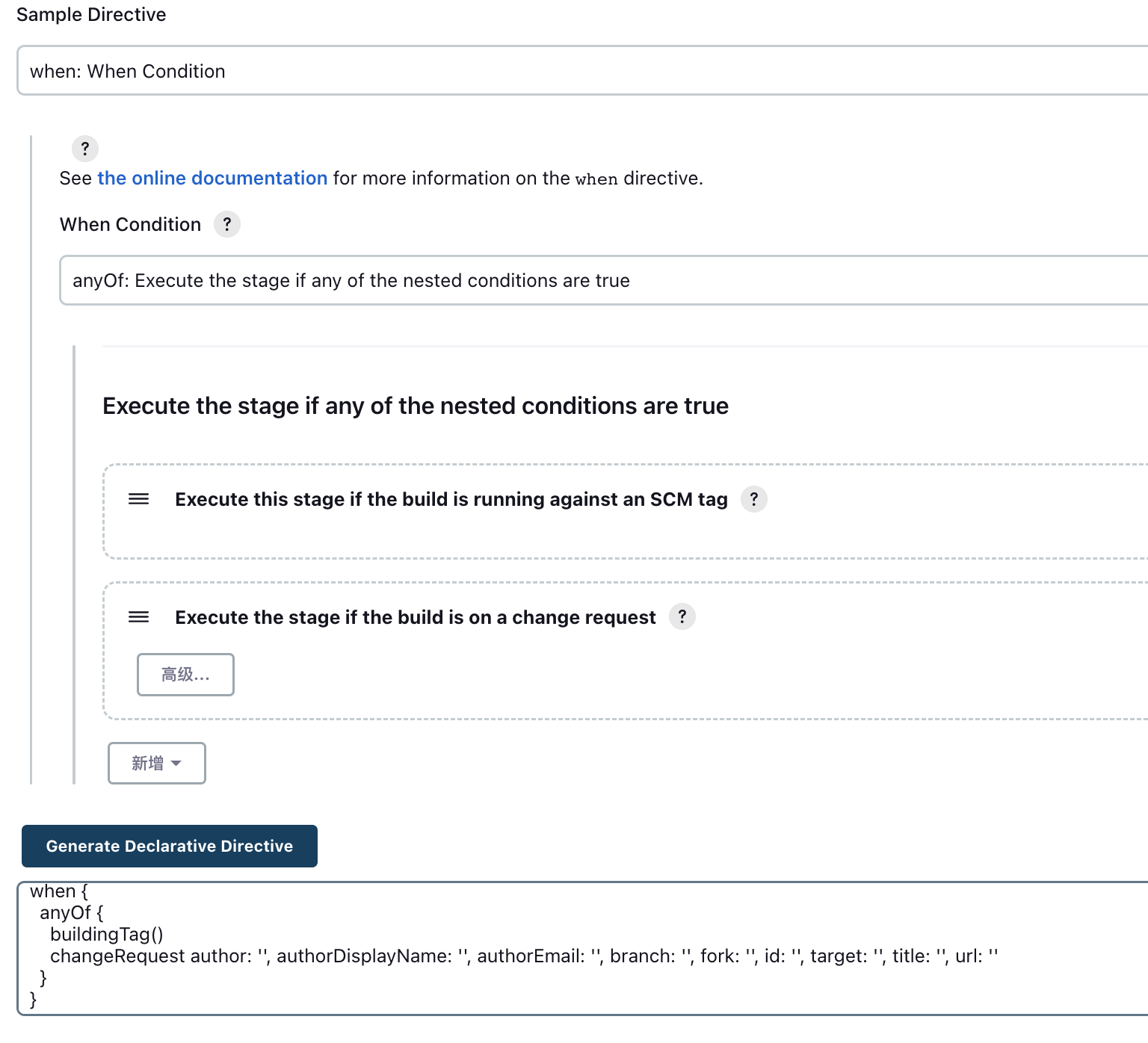 详见 https://www.jenkins.io/doc/book/pipeline/syntax/#when