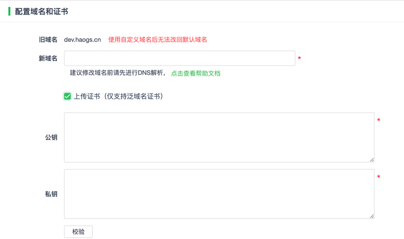 - 新增支持上传泛域名证书,方便您使用HTTPS访问服务,提高安全性